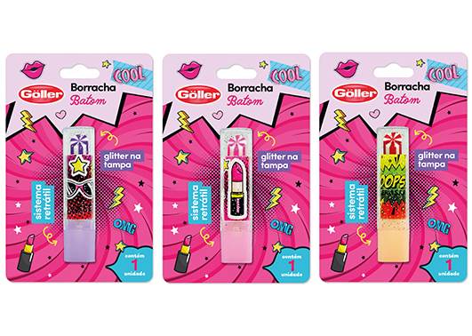 BORRACHA BATOM RETRAT 14CM C/GLITTER SOR